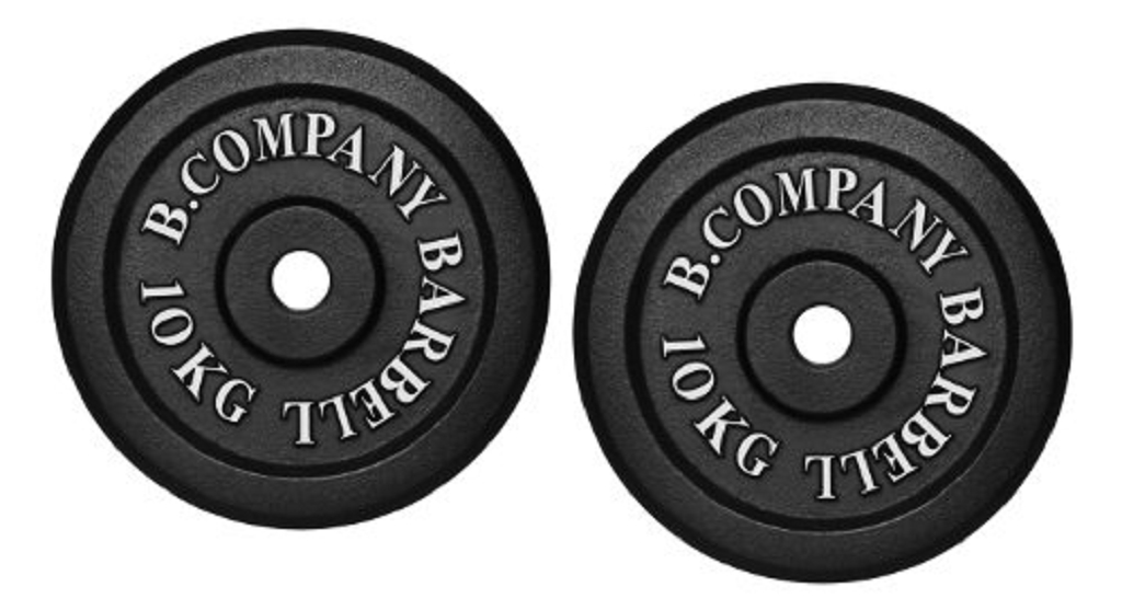 - Hantelscheiben mit B. Company Barbell Aufschrift und Kg-Angabe (eingeprägt)